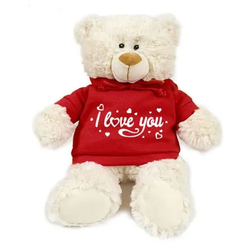 دب كريمي مع هودي أحمر - أنا مجنون بك - 38 سم