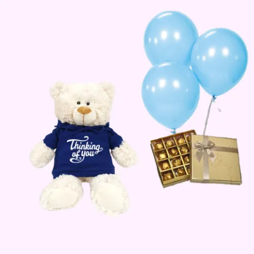 Thinking Of You Teddy, Belgian Chocs & Balloons